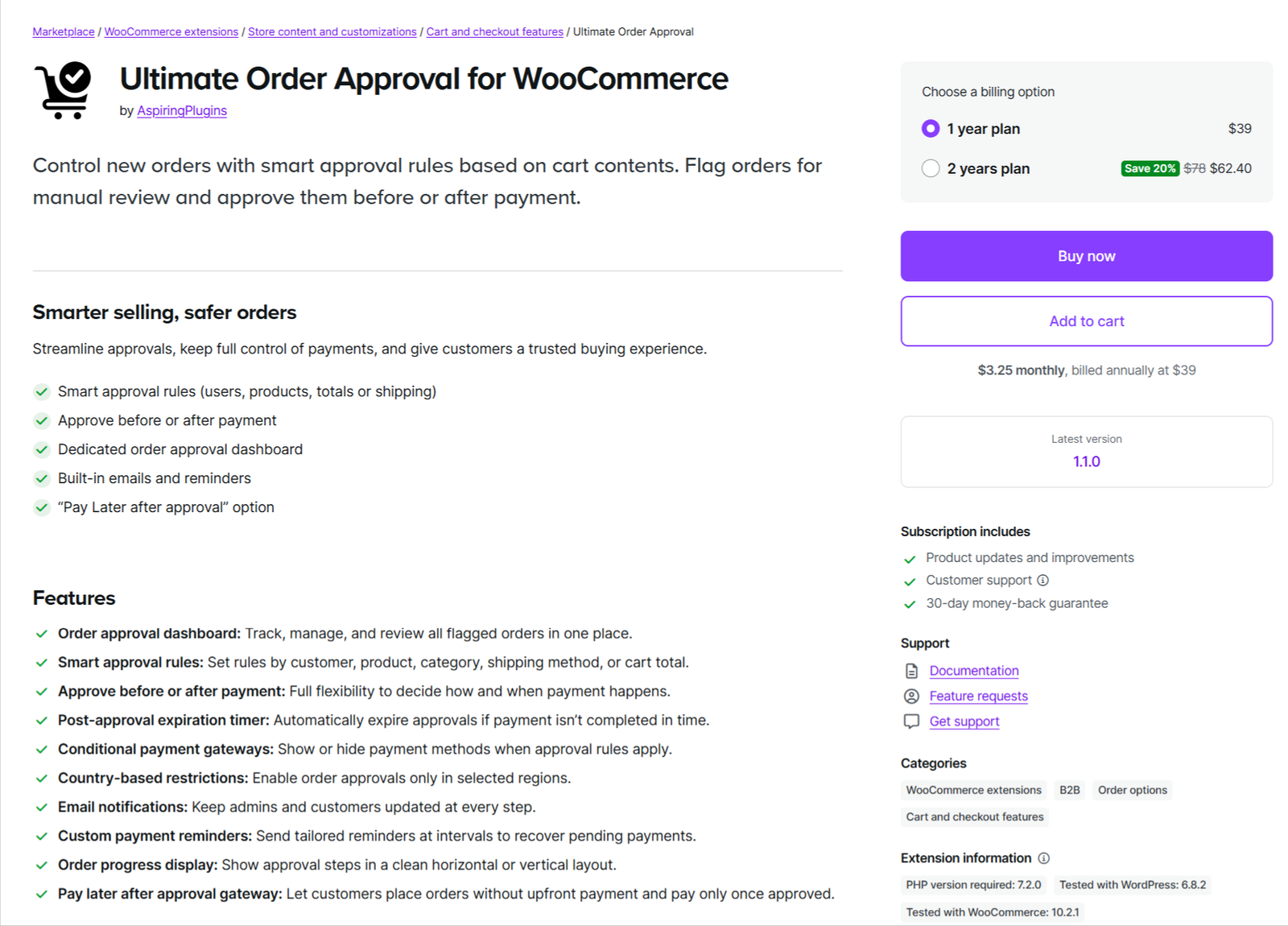 2. Ultimate Order Approval for WooCommerce – by AspiringPlugins